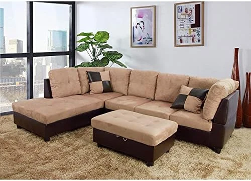 - 【Firm and Comfortable】Sectional structure: Microfiber&Leather Upholstery + Sponge + Spring Bag + Spring Belt+ Wood Frame. The cushions you sit on are nice and firm, the more you sit in it the better. You’ll never have to worry about sinking in.