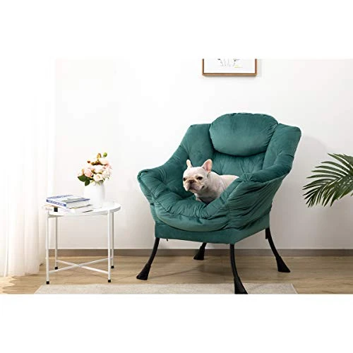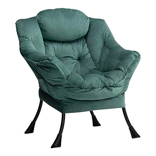 AbocoFur Modern Cotton Fabric Lazy Chair, Accent Contemporary Lounge Chair, Single Steel Frame Leisure Sofa Chair With Armrests And A Side Pocket, Thick Padded Back, Dark Atrovirens