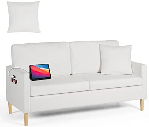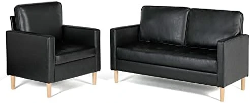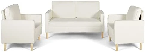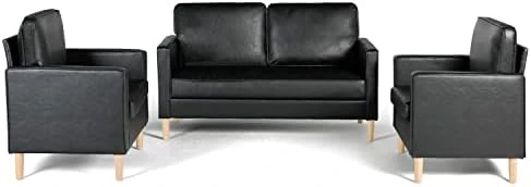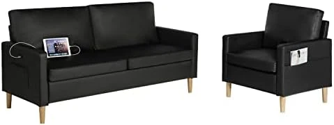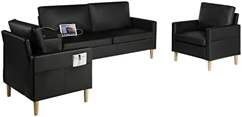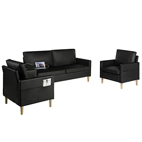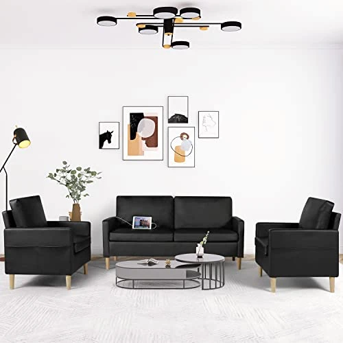 AILEEKISS Mid-Century Sectional Sofa Sets 3 Pieces Faux Leather Loveseat Couches With 2 USB Living Room Furniture Accent Arm Chairs For Small Space, Apartment, Office (1-Seater+1-Seater+3-Seater)