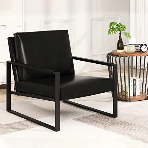 - Comfy & Durable Use:Oversized PU leather seat and backrest are filled with high-density sponge, which is soft enough for you to enjoy yourself and relax your body after tired work. Leather sleeve on armrest for added comfort. This bedroom accent chair has been tested for wear resistance and wrinkle resistance. Resistant to dirty ,easy to clean. Permeability ups to 95%.