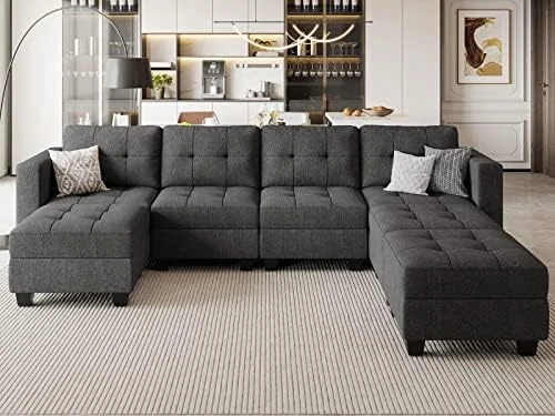 - Versatile & Flexible:Modular sofas allow various configurations to be customized for different homes, in addition to combining into L or U-shaped sofas typical of everyday life. You can also give full play to your imagination and combine them into any shape you need to meet the needs of your family’s life. Each part of the sectional sofa can be purchased separately, and you can add modules at will to meet new needs.