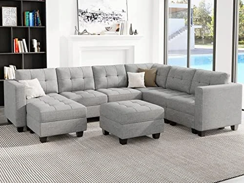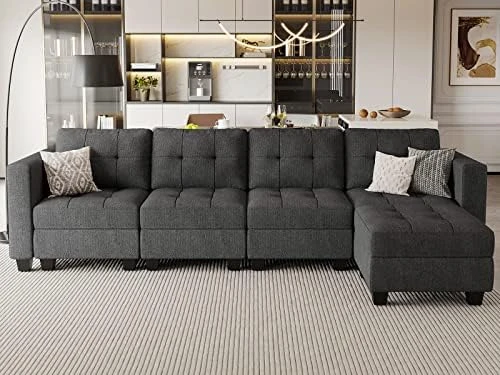 - Easy assembly: The dimension of modular sectional sofa set is 90.20″(L)*116.60″(W)*33.50″(H).Easy to install, no tools required,very easy to follow instructions to assemble. The sofa is moved individually so they are great to navigate tricky hallways or tight doorways. The modualr sofa comes with 9 boxes, which may be delivered at different times. If you have any questions about the tracking numbers or the product, please feel free to contact us. We will respond to you in 24 hours and try our best to solve any problem so as to achieve your 100% satisfaction.