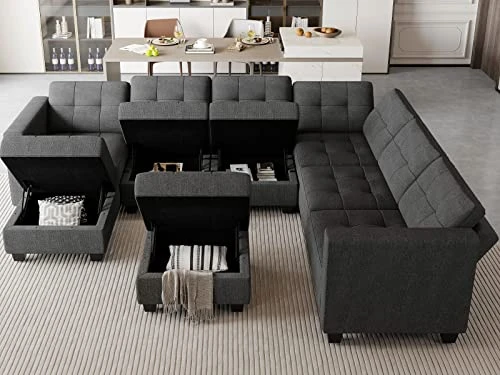 - Hidden Bonus Storage Spaces: Every seat of the modular u shaped sectional sofa set has a hidden storage space,Storage dimensions:22.40″(L)*22.40″(W)*5.70″(H). You can place magazines,toy,remote control,pillows etc. The storage seats not only can makes your room tidy but also adds some practical function for your home.