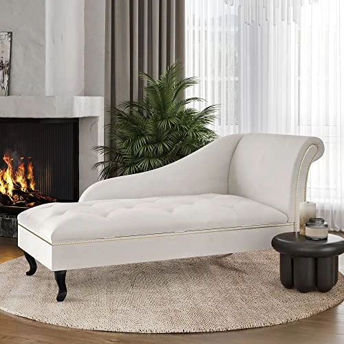 - [CONVENIENT STORAGE] This comfortable chaise lounge chair doubles as a storage bench. The discreet compartment is ideal for storing blankets, toys, shoes or magazines.