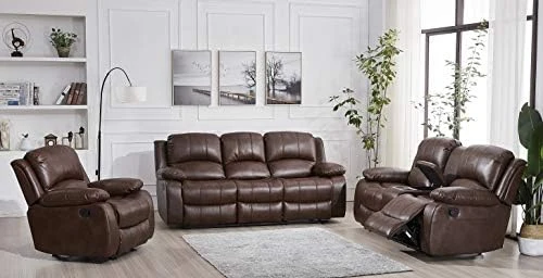 - Enjoy the ultimate comfort and relaxation: This sofa set provides great comfortable with bonded leather upholstery, pillow top backrest and armrests, and pocket coil spring seat cushion covered with premium foam