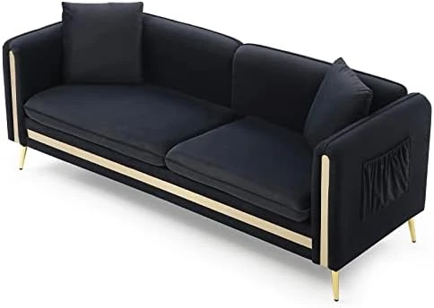 CALABASH 2 Piece Living Room Furniture Sets, Modern Tufted Velvet Sofa Couch And Loveseat With Removable Cushions Side Pocket And 4 Pillows For Bedroom Apartment(Black, 2+3 Seat)