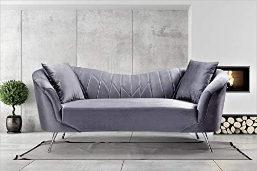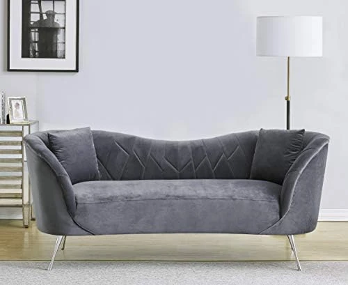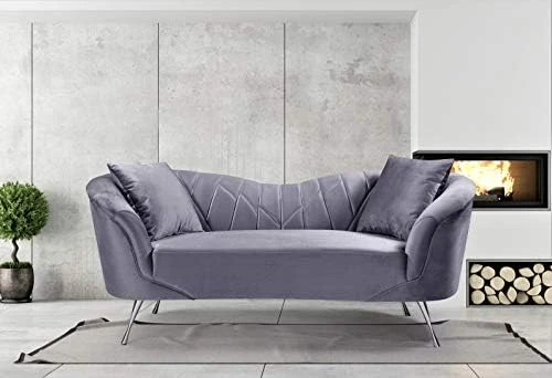 Container Furniture Direct Koger Mid Century Modern Living Room Velvet Chesterfield, Sofa And Loveseat, Fossil Grey