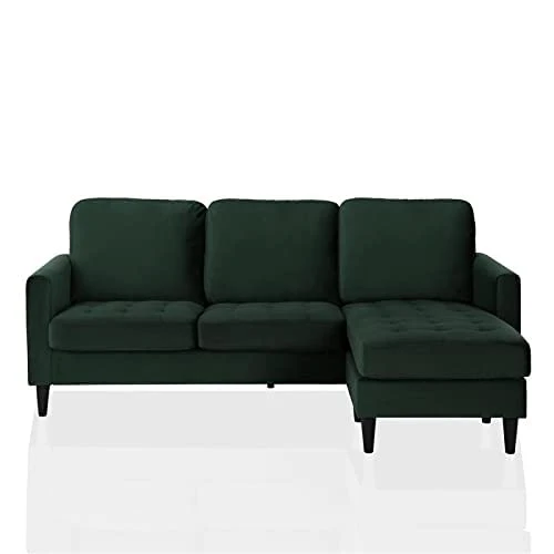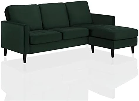- Spacious L shaped couch with sturdy, solid wood legs with a contrasting black finish