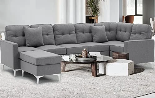 - Stylish appearance: TheConvertible Sectional Sofa Couch has a sleek, modern appearance that complements various interior decorating styles. Its contemporary look and grey fabric make it a perfect statement piece of furniture for your family’s living room.