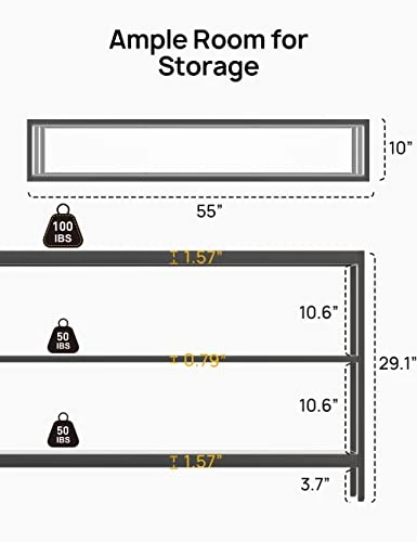 - Maximized Storage Space: This 3-tier entryway table adds a sense of uncluttered elegance to your contemporary living space. The table features 55″L x 10″W x 29.13″H dimensions with a 10.62-inch space between each layer, providing ample storage space for books, bouquets, ornaments, photos and more