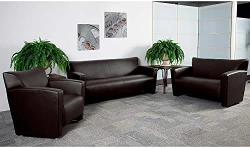 - Black LeatherSoft upholstery, sculpted back and fixed seat cushion with CAL 117 fire retardant foam