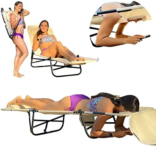 - ERGONOMIC DESIGN – The traditional sun lounger works well when laying on back and tanning front side of the body. But has a major flaw when laying on front of body to tan the back of your body. Let’s face it everyone wants an all-around body tan. With Flip Chair now you can lay face down to tan the back of your body in full comfort. No turning your head that causes neck ache. No getting one side of your face more than then the other side. But the best part is you can use your time when lying fac