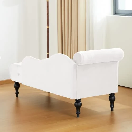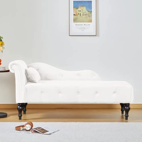 GENERIC Tufted Upholstered Velvet Rolled Arm Chaise Lounges Indoor Chair, Right Arm Facing Chaise Lounge With Nailhead Trim For Living Room Bedroom Office(White), 27.5D X 60.6W X 28.3H In