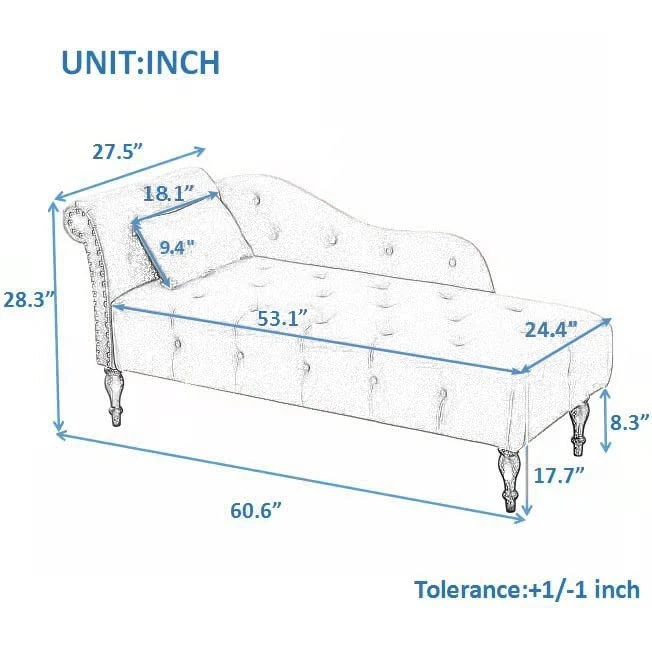 Be the first to review “GENERIC Tufted Upholstered Velvet Rolled Arm Chaise Lounges Indoor Chair, Right Arm Facing Chaise Lounge With Nailhead Trim For Living Room Bedroom Office(White), 27.5D X 60.6W X 28.3H In” Cancel reply