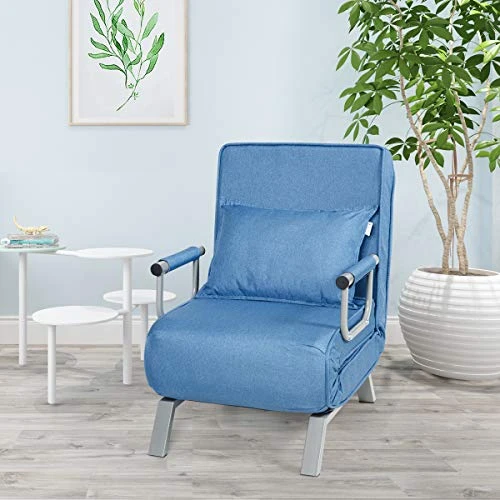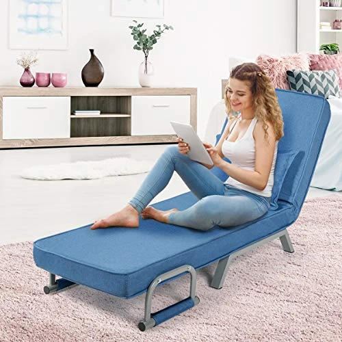 Giantex Convertible Sofa Bed Sleeper Chair, 5 Position Adjustable Backrest, Folding Arm Chair Sleeper W/Pillow, Upholstered Seat, Leisure Chaise Lounge Couch For Home Office (Blue)