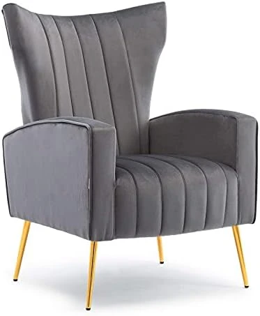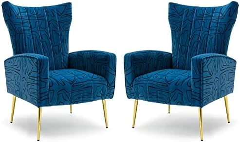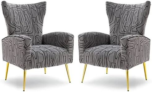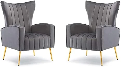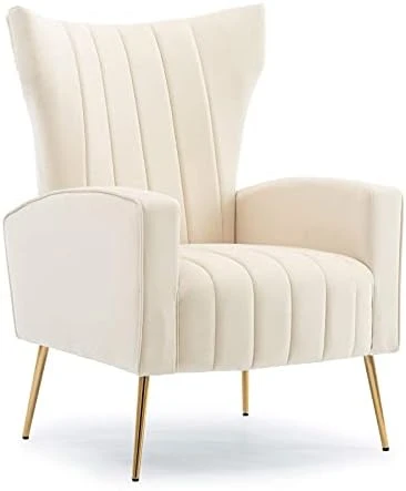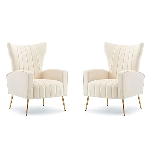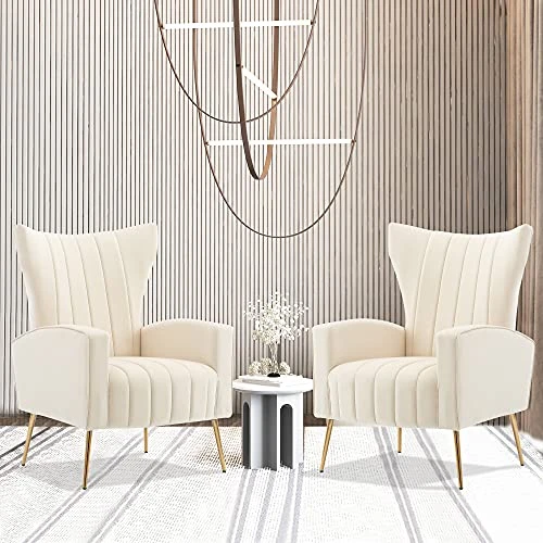 HOMEFUN Accent Chair Set Of 2, Velvet Wingback Armchair Modern Upholstered Single Sofa With Metal Legs For Living Room Bedroom Nursery, Beige