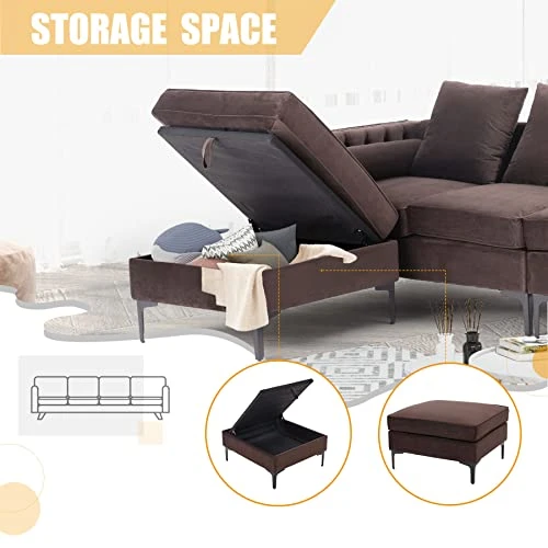 - Storage Ottoman: We customize a removable ottoman with storage function for the sofa. The sectional ottoman can hold up to 28.7”(L)*24.8”(W)*5.9″(H). You can put newspapers, magazines, blankets, remote controls and other items in it to make your living room more neat and tidy.