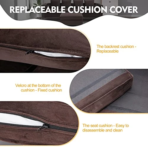 - Detachable Cushion Covers : The sofa cushion is fixed by Velcro, and the sufficient padding makes the 5.1〃cushion not easy to slide. Cushion covers and pillow covers are equipped with zipper, can be easily removed for cleaning.