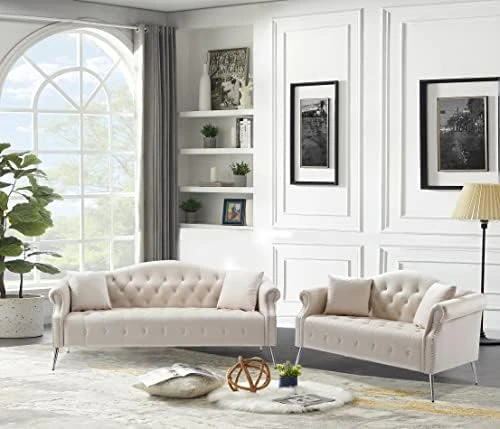 - ✔Stylish Style: The design fully considers the current popular furniture elements, button tufted on the outside and inside of the seat and backs creates a casual yet modern vibe. silver nailhead trimmed are suitable for home fashion elements.