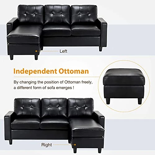 - 【VARIED OPTIONS】 Features leather material, with many different options (L shape sofa with ottoman, 3-seat couch with two free ottomans, twin chaise or anymore) of sectional sofa setup for stylish sitting room setting. Two independent Ottomans allow you to change the style of your room anytime.