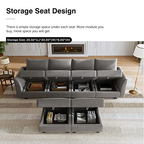 - 【Space-saving Storage Seat】 Each seat of the convertible modular sofa has an extra storage space which is large enough to put extra pillows, blankets, books or holiday decorations, makes things more uniform and organized.