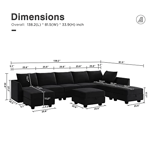 - 【Sleeper Sectional】 The options for putting modular sofa together are endless. This sectional sofa with ottoman can also be reconfigure to a bed which can fully accommodate 3 people who are 6 feet tall.