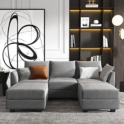 - 【Double Chaise Sofa】 There is no need to compete with your partner about the best seat on your couch because all the positions are comfortable. The U shaped sectional sofa suits to any interior décor and embrace your friends in cozy, comfortable vibes!