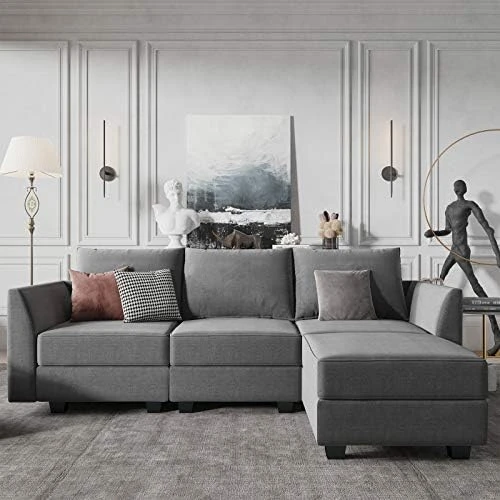 - 【Appealing and Cozy】 The overall lines are simple and clean with gentle models and attractive design, complemented by soft back cushions. This luxurious appearance reveal the high-priced Modular Couch. It’s specially designed for small rooms and it is covered by polyester fabric, which is durable and easy to clean.