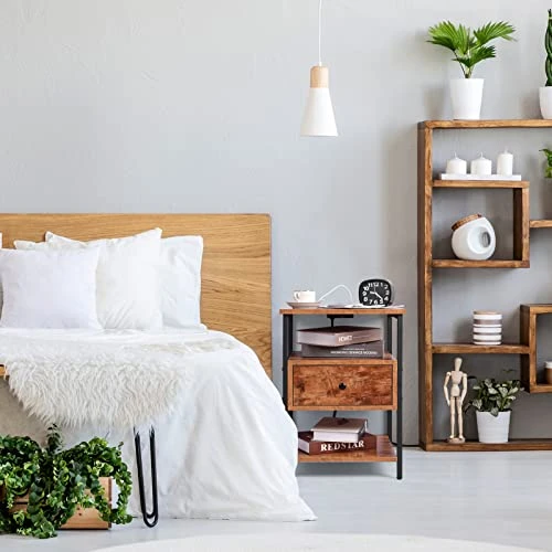 - 【Perfect Gift】 Treat yourself or someone special to this memorable gift! This small nightstand with charging station is a meaningful gift for lover, parents, friends.Retro rustic brown display make the beside table fit well with any decor and add a warm charming element to your room.