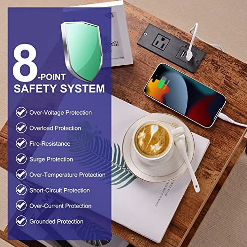- 【HOW HANDY TO HAVE PLUGS IN THE BACK】The charging feature allows us the flexibility to access any of our charged devices anytime needed. No need to look around it’s within your arm’s reach. The ETL certified charging station of the small couch side table with storage can charge 3 devices at one time without slowing down charging speed. 5 ft power supply cord also provides great convenience.