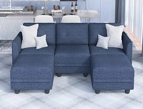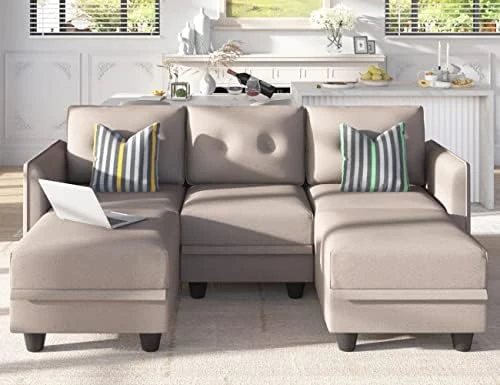 - ❤Easy to Assemble: Sectional couch overall size: 86.21″(L)*55.9″(W)*33.9″(H), Modular sofa need to assemble, just follow the instructions, very simple. This sofa includes 6 packages (1 pair of armrests + 3*middle modules with backrests and back cushions +2*ottomans), SIX PACKAGES may arrive separately within different days, please wait patiently for 2-3 business days.