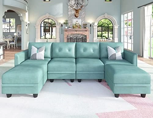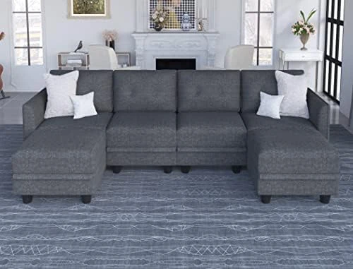 - ❤Easy to Assemble and Move Around: Sectional couch overall size: 111.8″(L)*81.49″(W)*33.9″(H), modular sofa is easy to assemble, just follow the instructions, adults can easily complete it in less than half an hour. This sofa includes 8 packages (1 pair of armrests + 4*seats with backrest and back cushion + 3*ottomans). Warm tips: EIGHT PACKAGES may arrive separately within different days, please wait patiently for 2-3 business days.
