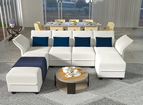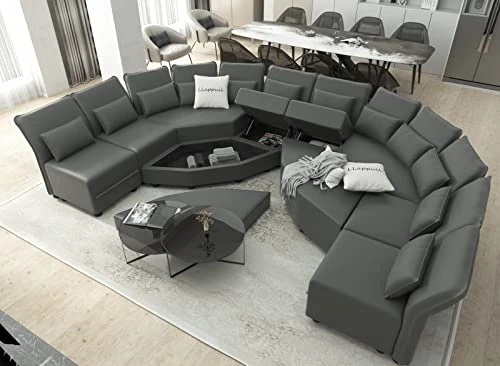 - 【Extra Large Storage Seats】The sectional modular couch has large enough invisible storage space under each seat for classification storage blankets, pillows, children’s toys, game consoles, magazines, tools, etc. Make sure your home is clean and tidy. Square ottoman storage size: 20.67*20.67*6.30 in; Hexagonal corner ottoman storage size: 45.3*20.1*6.70 in. In addition, the 6 side corner ottoman can be used as a sleeper sofa bed.