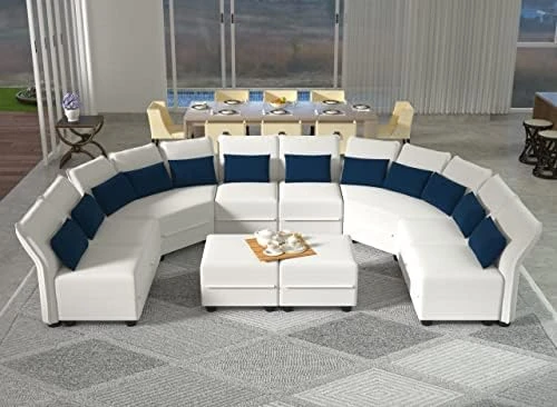 - 【Assembly & Package】Oversized modular sofa is easy to put together, just follow the instructions to install step by step, it only takes less than half an hour to complete it. This sectional couch includes 15 packages (3 Carton A+ 6 Carton B+ 4 Carton C+ 2 Carton D), FIFTEEN PACKAGES may arrive separately within different days, please wait patiently for 2-3 business days. The maximum capacity of each seat is 300 lbs.