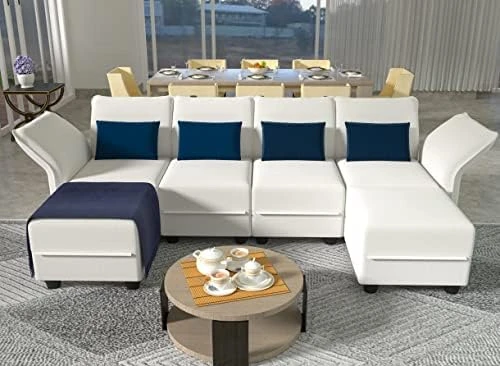 - 【Why Choose US】Our modular sectional sofa made of easy to clean, waterproof and breathable faux leather fabric, and the fabric is soft and wear resistance, which is perfect for families with pets and children. Wider built-in wooden frame, use the stronger wooden legs, and high elastic cotton seat cushion, which make modular sleeper sofa more durable.