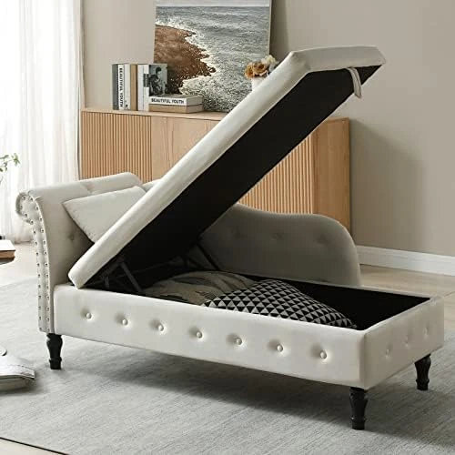 - 【Storage Chaise Lounge】- This chaise lounge with storage, a large hidden storage space, you can store magazines, books, blankets, pillows and other sundries in it, especially kid’s toys, effective space saving.