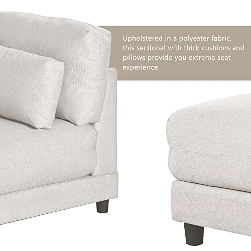 - [Ultimate Comfort] The sectional sofa is upholstered in a polyester blend fabric, with cushions featuring thick foam cushion padding for prime relaxation. You can lean back and stretch out your legs long on the chaise lounge when you or your guests need more space. This sofa is perfect for movie nights, game nights, or just relaxing after a long day at work.