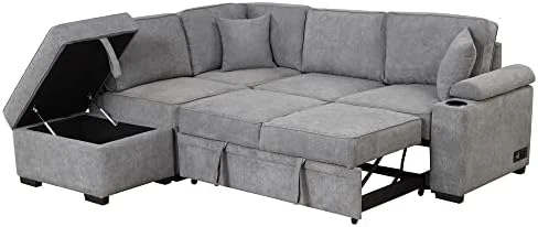 Merax L Shaped Sectional Sofa Couch Sleeper Bed With Storage Ottoman And Chaise For Living Room, Small Apartment Love Seats, Beige_Linen