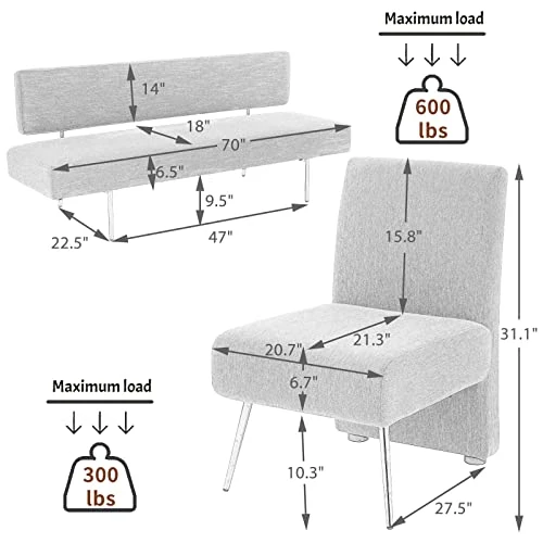 - 🏰Accurate size: living room chair: 27.5 “W * 20.7” D * 31.1 “H, loveseat couch: 22.5” W x 70 “D x28.8” H,chair bearing 300 pounds, sofa load 600 pounds.