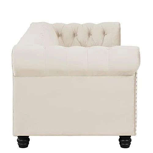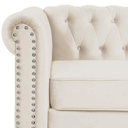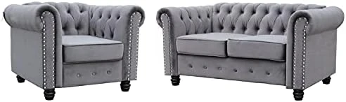 - 【Chesterfield Style】- Designed with the traditional chesterfield style of this seating group with prevalent button-tufted accenting, scrolled arms and turned legs that is hard to overlook.Seat cushions filled with high resilience foam and polyester fiber wadding provide comfortable, Overstuffed construction for extra comfort and longevity.