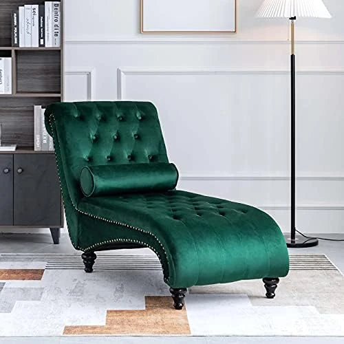 - [Elegant Décor for Your Home] – The Back of the round head and the front of the round head has a Tufted effect. This linen Chaise Lounge Chair with tufted back, nail head and a toss pillow brings style and elegance wherever it goes, whether you’re furnishing your living room or need to take a rest out of the bedroom.