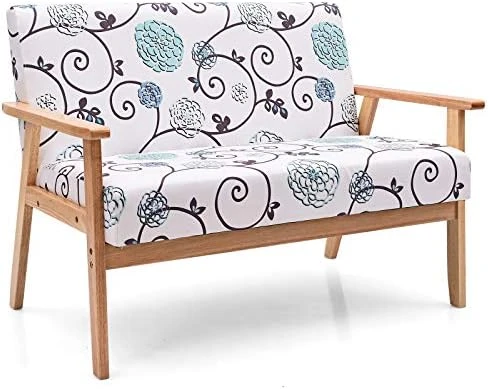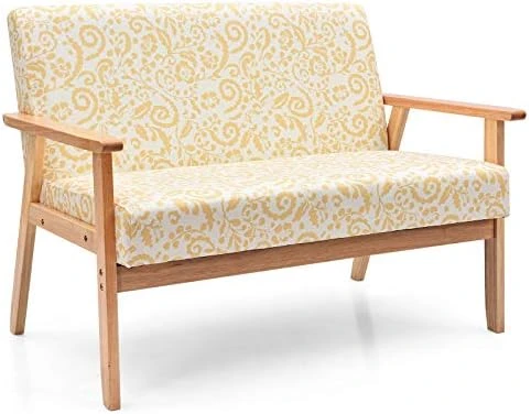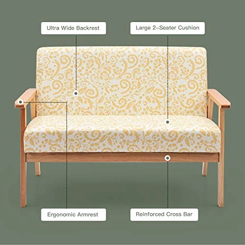 POWERSTONE Modern Upholstered Loveseat, Fabric Loveseat Sofa Couch Wooden 2-Seat Armchair For Home And Office (Yellow, Loveseat)