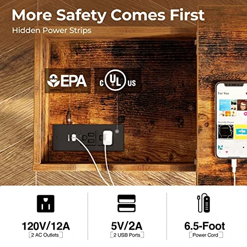 - [Sturdy and Decorative Construction] This bedside table has retro rustic brown display which fits with any decor and add warm charming element to your room. The table has a sturdy structure as it is constructed with particle board with rigid metal frame which offers durability and stability. With bearing capacity up to 22 lbs.