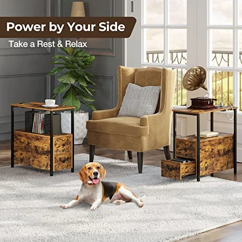 - 【Sofa Side Table with Charging Station】 2 Standard Plug Outlets & 2 USB Ports with Cable Management 6.5ft long power supply cord. Low battery where is power outlet? No need to look around it’s within your arm’s reach.