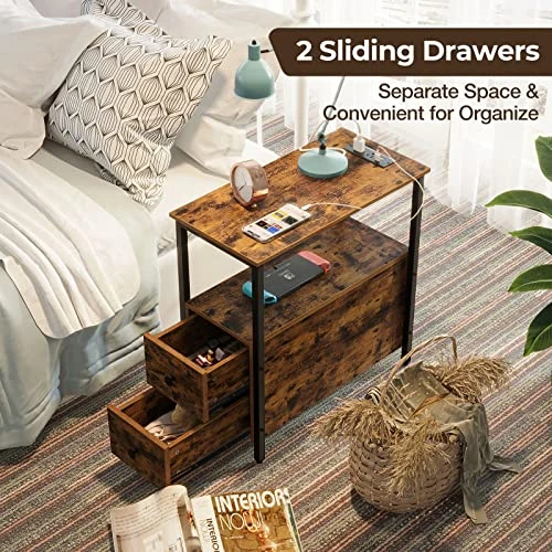 - 【Versatile & Convenient End Table】 Narrow side table with 2 drawers and open shelf offer you ample space to storage and display which you can place your decorative phone lamps books and etc. Great for living room bedroom home office and small spaces.