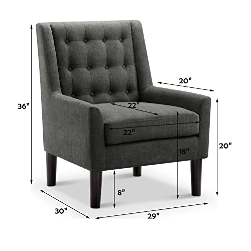 Rosevera Arvada Rosevara Modern Furniture Living Reading Room Comfy Accent Chair For The Bedroom, Standard, Charcoal