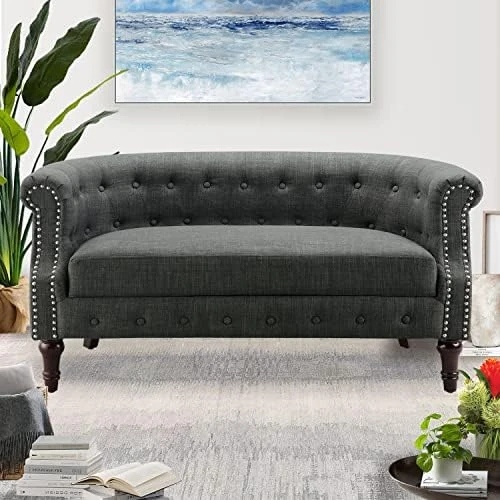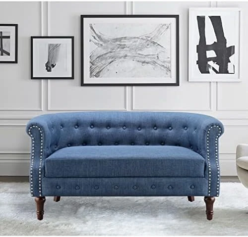 - Special Feature: Arm Rest, Linen Upholstery, Wood Legs, Tufted Back