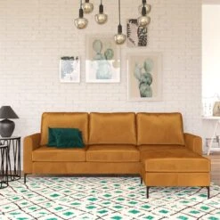 DHP Novogratz Chapman Reversible Sectional Sofa And Floating Ottoman With Black Metal Legs, Rust