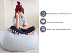 Pillowtex Quality Kids Memory Foam Bean Bag Chair – 3ft Bags With Removable Washable Cover