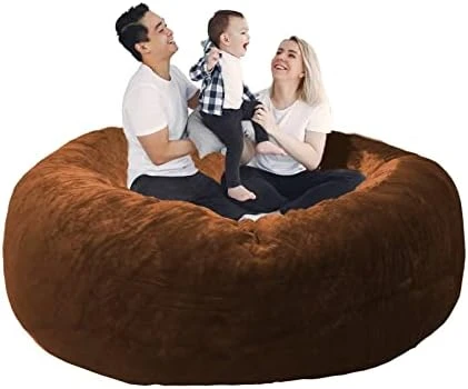 SOXOCE Bean Bag Cover, 6ft, PV Velvet Brown RoundBean Bag Chairs (No Filler) – Comfy Big Bean Bag Chair Covers For Kids, Teens, & Adults – Cover ONLY